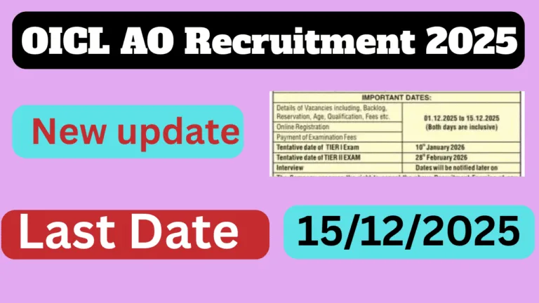 OICL AO Recruitment 2025: The Oriental Insurance Company Limited (OICL) has officially released the OICL AO Recruitment 2025 notification for …